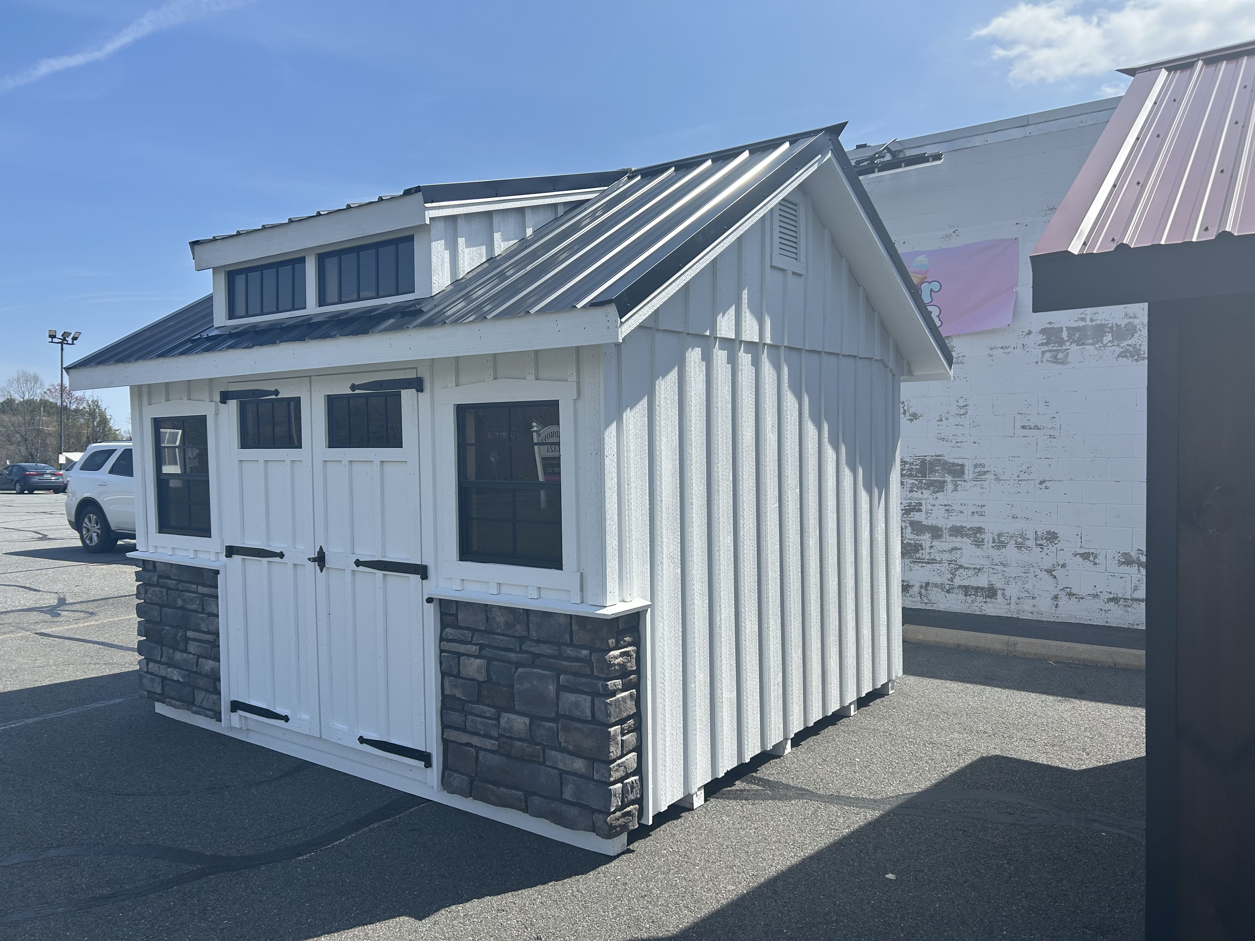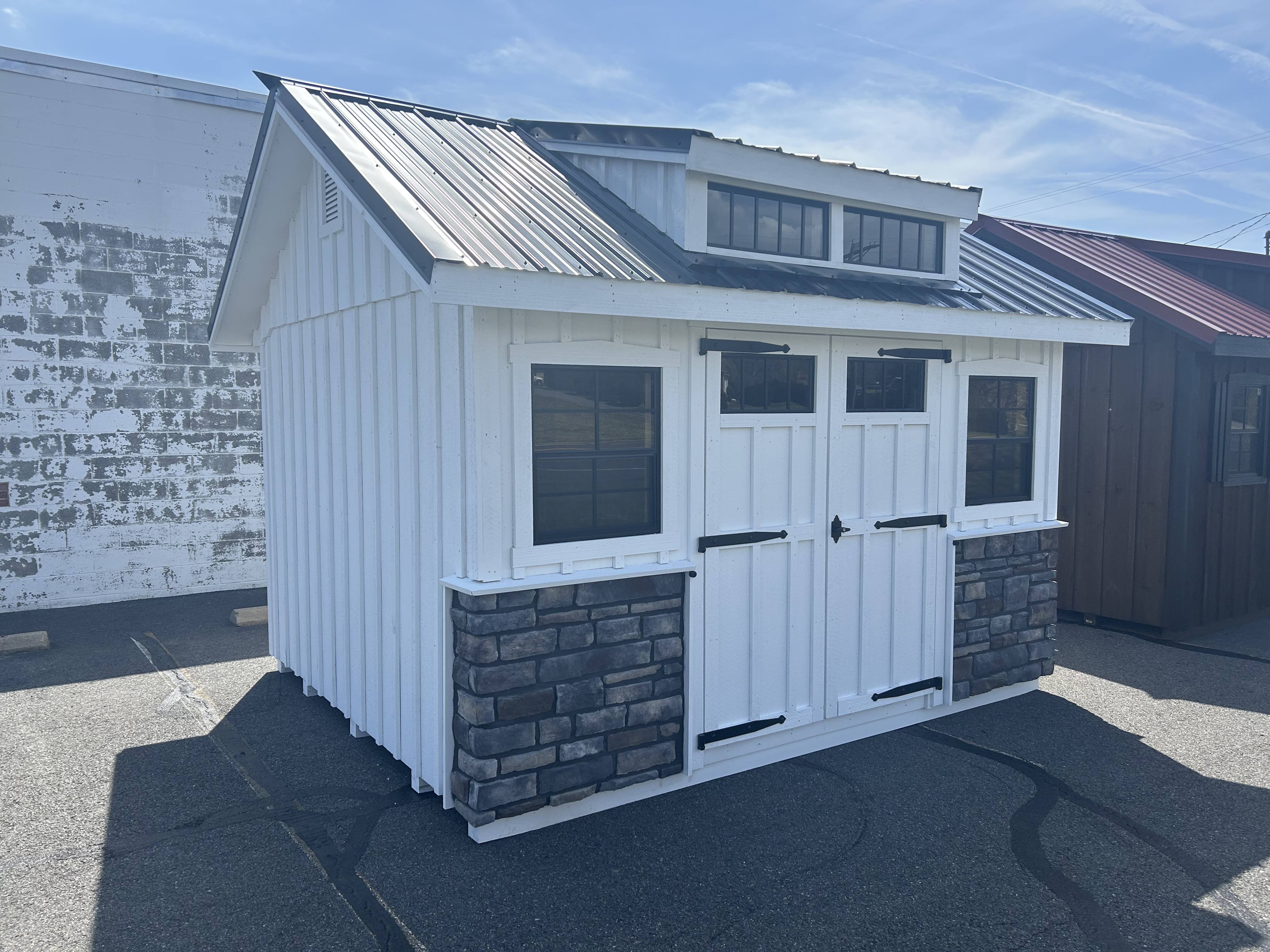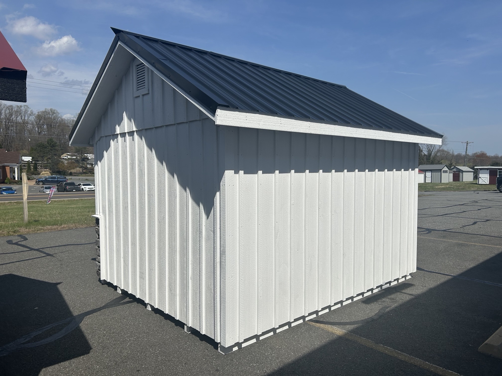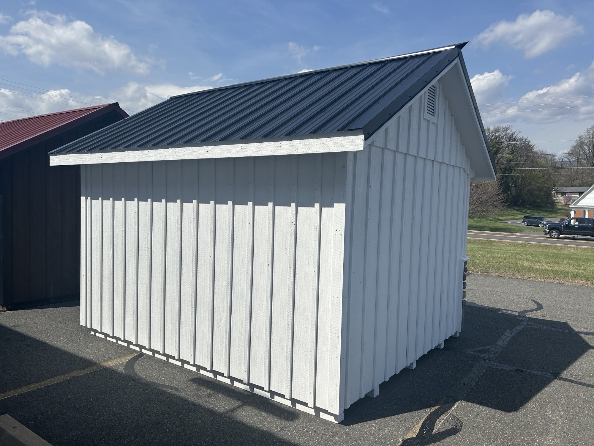 The 10x12 A-Frame combines classic design with refined details, offering a stylish and functional storage solution. Finished in crisp white Board & Batten siding with matching trim, this building delivers a clean, timeless look that complements any property.