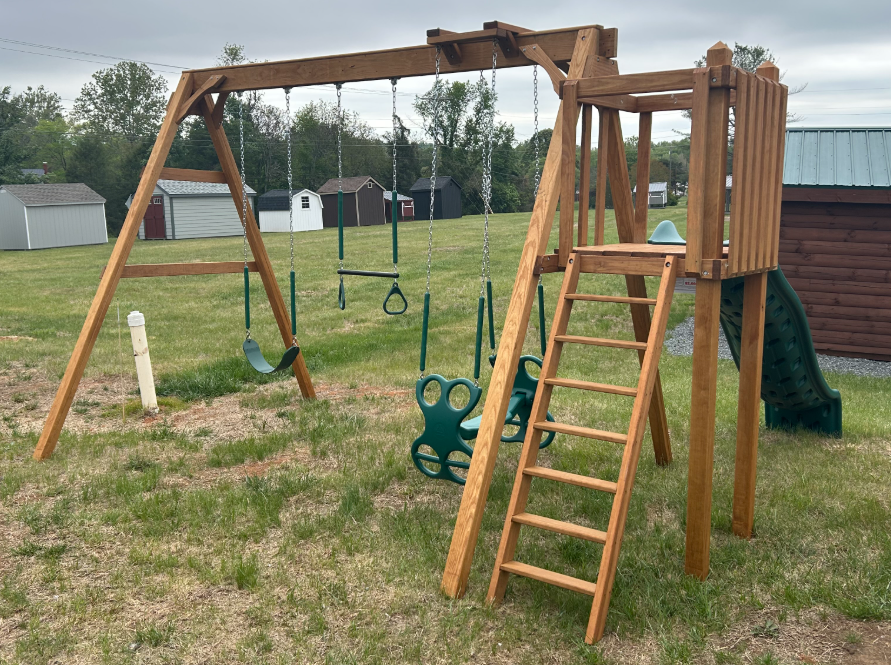 The full swing beam is ready for group fun and includes one belt swing, one trapeze bar and a double glider so friends or siblings can swing side-by-side. The heavy-duty A-frame design adds strength and stability, making it a dependable centerpiece for years of outdoor play.