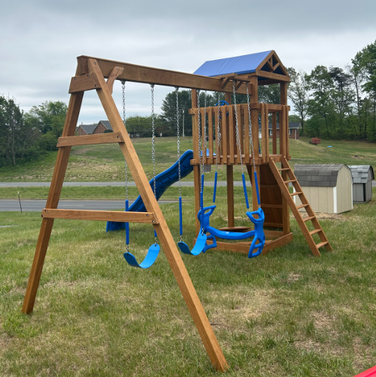 Bring backyard adventures to life with this charming 4x4 playset, thoughtfully crafted for hours of active outdoor fun. Built with durable pine framing in a warm cedar finish, this playset blends beautifully into any backyard while offering the strength families can trust.