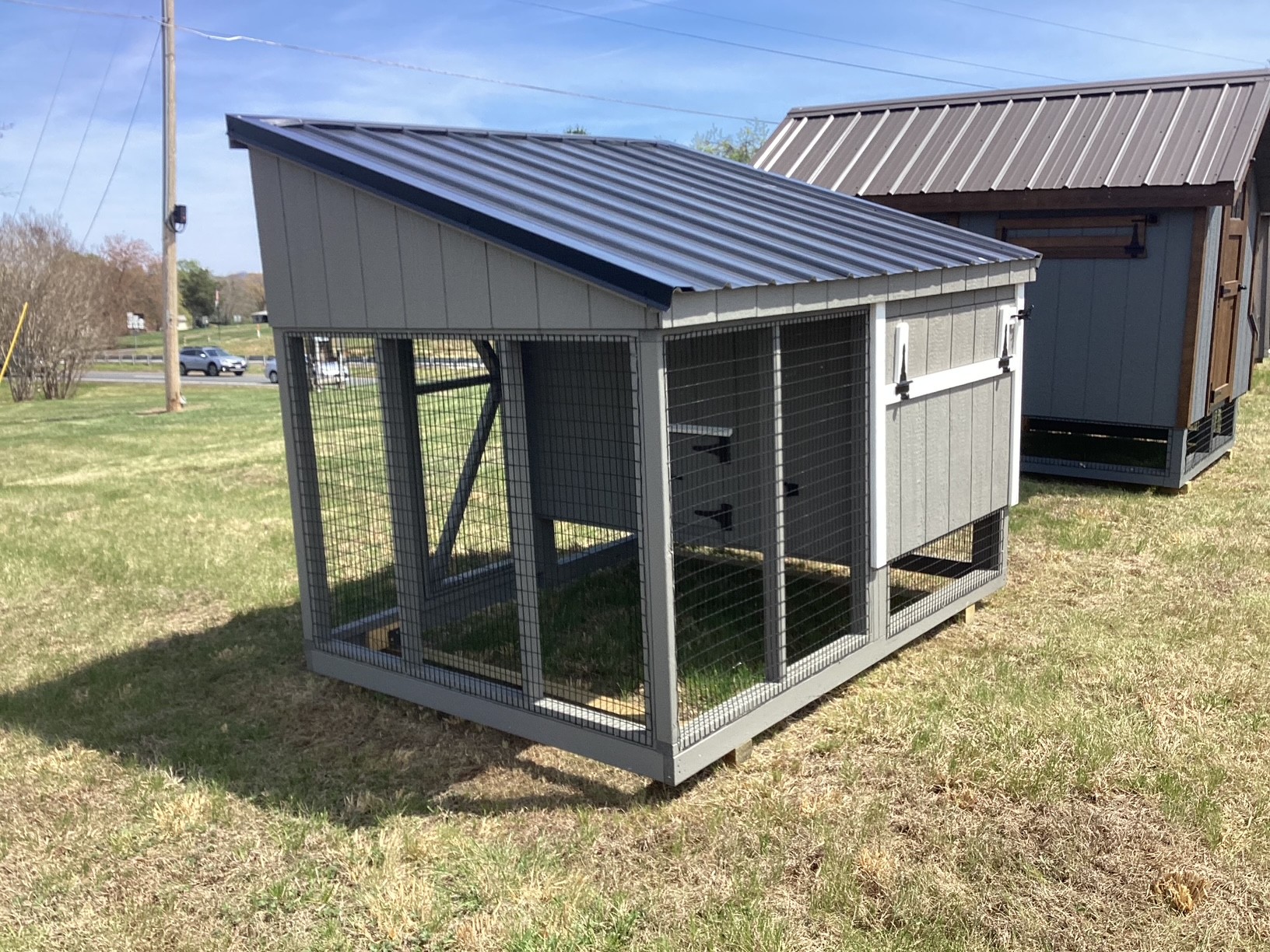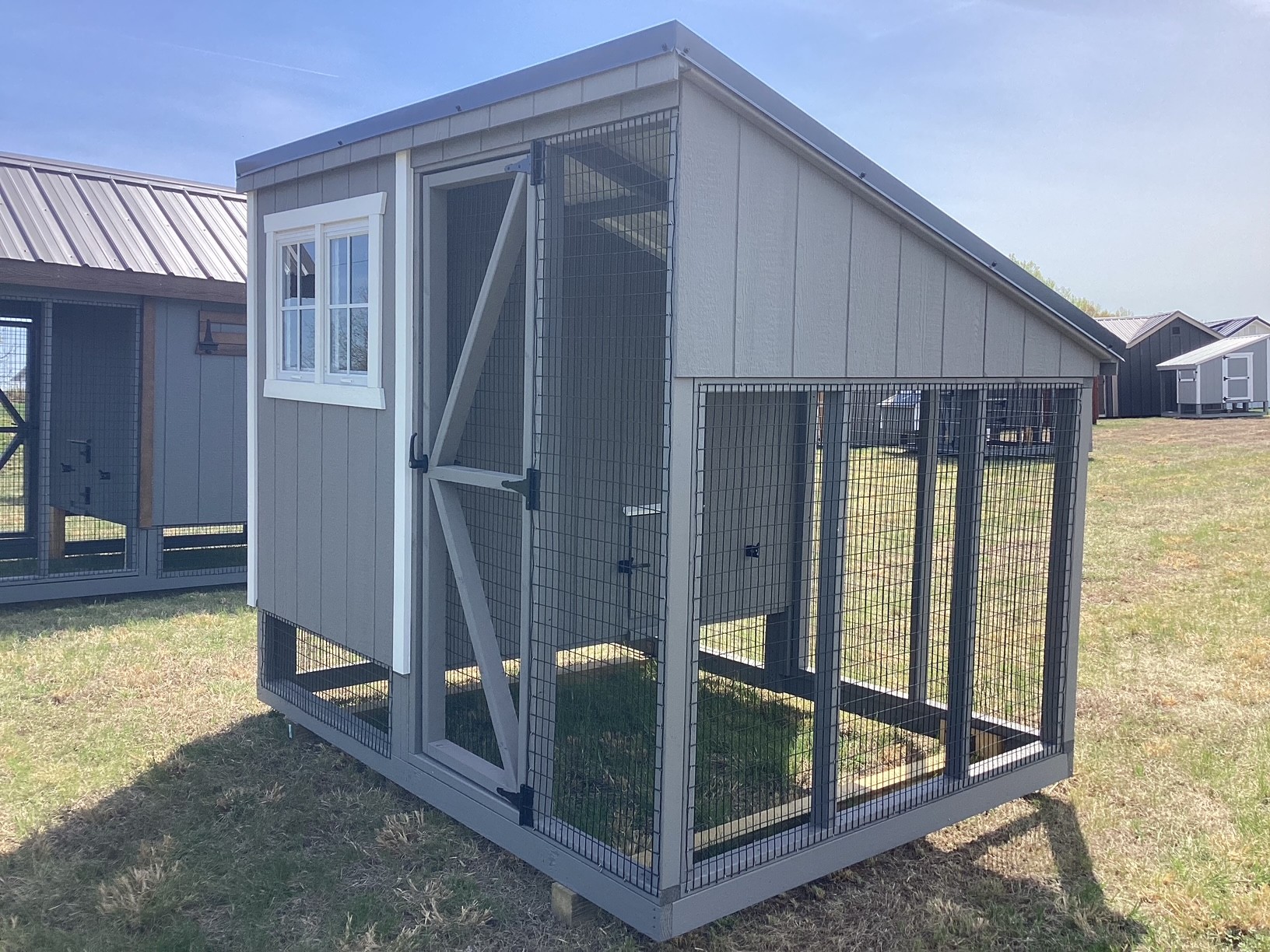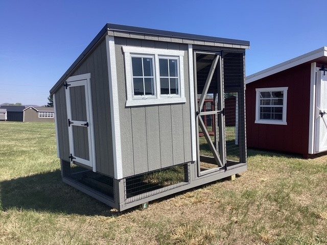 The 6x8 Lean-To Combo Coop is a practical and efficient backyard solution, providing a secure and comfortable home for your chickens. Finished in Pewter LP Smart Panel siding with crisp white trim, it offers a clean, modern look that complements any outdoor space.