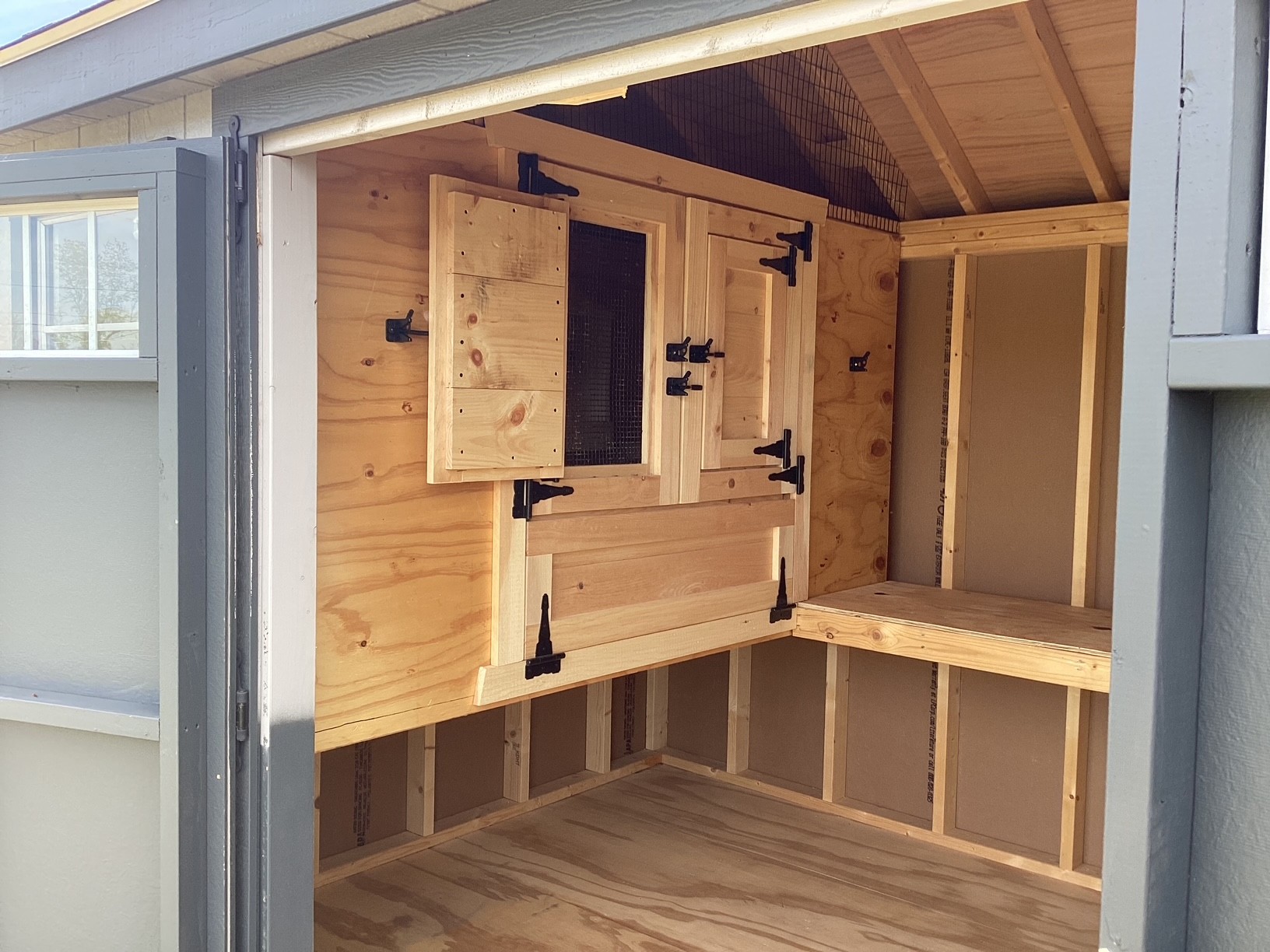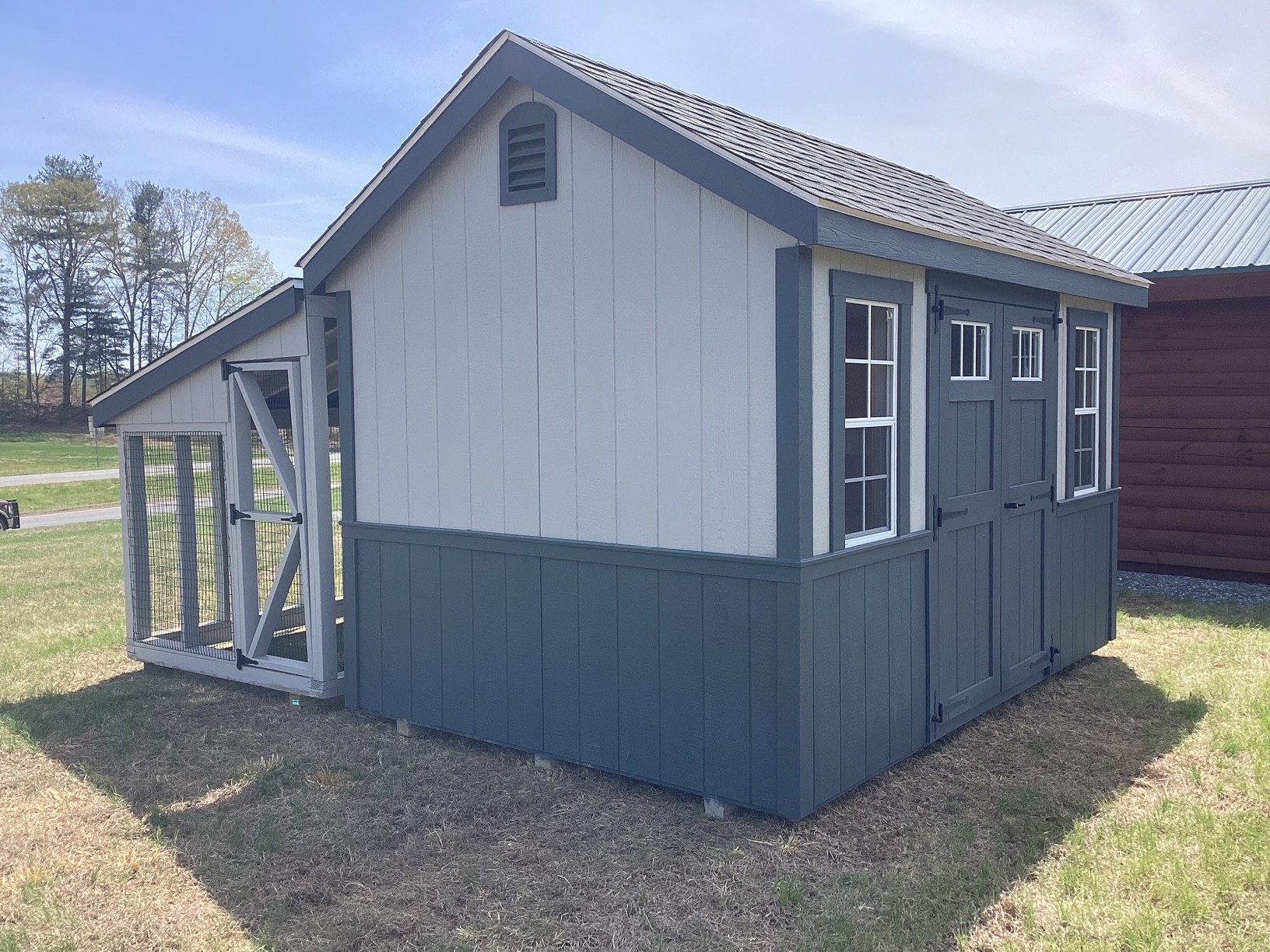 Access is easy with a wooden double door for full entry and a screen door for quick, convenient interaction. Two windows brighten the interior and help maintain proper ventilation for a healthy environment.